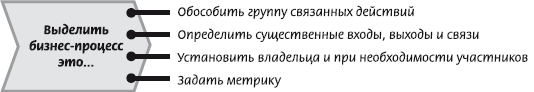 Выделить бизнес-процесс – это как раз и означает дать описание существенных характеристик и деятельности на уровне современных требований: назвать определенный вид работ, обозначить его начало и конец, найти «владельца» процесса (того, кто отвечает за результат) и определить требуемый результат (в том числе показатели качества и эффективности) – рис. 3.1.4.Сегодня много пишут о необходимости перехода от функционально-ориентированной (построенной методом «функциональных колодцев») к процессно-ориентированной организации управления (сфокусированной на управлении «по горизонтали»).
