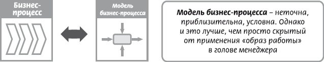В эту ловушку попались многие. Можно даже говорить о том, что на волне увлечения бизнес-процессами в какой-то момент начала складываться особая субкультура любителей моделирования БП. Как все неофиты, они с энтузиазмом несут свой «символ веры» в бизнес, обвиняя «непосвященных» в отсталости и несовременности… Как это обычно бывает, модное течение бурно коммерциализируется, иногда дискредитируя здравую исходную идею шумихой и неизбежными перегибами. Ведь в итоге для бизнеса важно не описание, а эффективное управление БП и конечные результаты деятельности. Модели же БП – это всего лишь формализованные профессионально ориентированные описания работ по созданию и предоставлению потребителю продуктов и услуг, исходный материал для управленца. Это специальные описания (тексты, схемы, таблицы), иллюстрирующие порядок исполнения работ, своего рода Навигатор по работам для менеджеров и исполнителей. И хотя модель – это всего лишь субъективное описание, при удачном исполнении ее применение приносит несомненную пользу (рис. 3.2.1). И, естественно, конечной целью является повышение эффективности управления, а не само по себе описание работ, что тем более важно, ибо большая часть современных методологий и решений узко сфокусирована, и поэтому при нецелевом или неправильном использовании резко снижается эффективность.