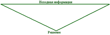 Таким образом, объем информации при принятии решения имеет вид перевернутой пирамиды. В широкой ее части располагается исходная информация – суждения, выработанные при формулировании проблемы, а на острие расположено решение проблемы.