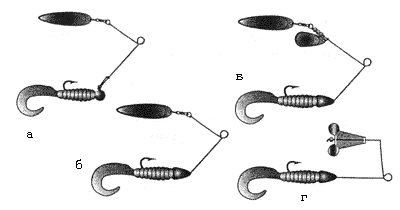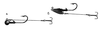 В Америке широко применяются джиг-головки с дополнительными крючками (рис. 38). Как правило, они имеют специальные ушки или застежки, на которые крепится поводок с тройником.