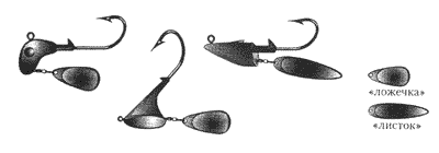 Такое коромысло с лепестком называется “джиг-спиннер”. Присоединив его свободный конец к джиг-головке, получаем “спиннер-бэйт”, т. е. пару “вращающийся лепесток — приманка”. А если вместо лепестка поставлена жужжащая турбинка, то это уже “базз-бэйт”.
