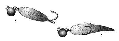 Пенопластовые “оливки” оснащались двойным или тройным крючком, иногда украшались нитками и свободно крепились сначала к блесне, а позднее — к ушастому грузилу. И назывались такие варианты “Чебурашками”. Но широкого распространения они не получили. В те времена наиболее популярной была ловля на снасточку с мертвой рыбкой. Естественно, что возня с мертвыми рыбками и их непрочность многих не удовлетворяла — хотелось найти равноценную замену. Особым толчком послужило развитие рыболовного спорта, ведь на соревнованиях спиннингистам разрешается ловить только на искусственные приманки; использование натуральных рыбок (хоть живых, хоть мертвых) категорически запрещено.