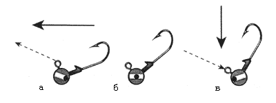 Изменение веса груза изменяет и скорость его падения V т, а это влияет на общие скорость и направление движения приманки. Именно поэтому на рыбалке, особенно в незнакомых местах, желательно иметь комплект сменных грузов разного веса.