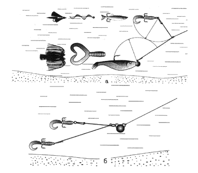 Игра таких приманок наблюдается только в вертикальной плоскости, т. е. вверх — вниз, причем она не происходит сама по себе, а достигается подергиванием удилища или неравномерным вращением катушки. Вывод здесь может быть только один: рыболов, применяющий пассивные приманки, должен гораздо активнее работать снастью.