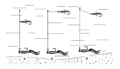 Здесь, как нигде, может встретиться самый разнообразный хищник от судака и окуня до сома и жереха, поэтому для начальной “разведки” можно порекомендовать снасть с двумя приманками, основной и дополнительной. В качестве добавки можно поставить выше главной приманки небольшой твистер или виброхвост, поролоновую рыбку и даже мушку (рис. 85).