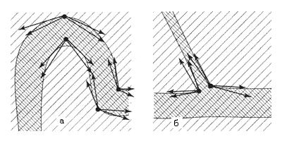 На реках также подводные гряды, возвышенности и склоны всегда привлекают многих рыб и являются отличным местом для рыбалки. Чаще всего это “треугольники” за препятствиями (опорами моста и т. п.) и места впадения притоков (рис. 118).