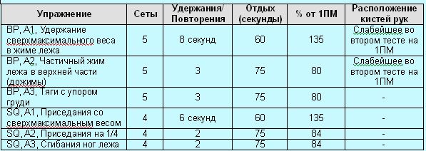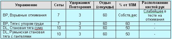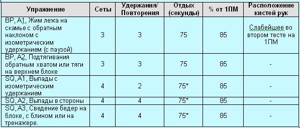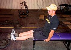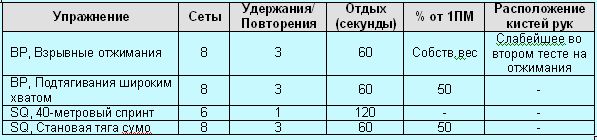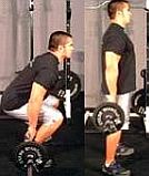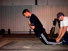 9. Прогулка Уотербери (Waterbury walk) — выполняется так. Стоя в двух полных шагах от стоек (плинтов), расположенных ниже колен, взять прямым хватом штангу, сделать два шага, положить штангу на стойки, перевести дух, взять штангу, пройти от стоек два шага в обратную сторону (задом), положить штангу на пол. Это будет одно повторение.
