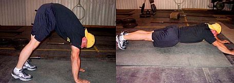 5. Вышагивания на руках (Hand walkout) — упражнение выполняется подобно выкатываниям на роликовом колесе. В нижней позиции не ложиться животом на пол, оставляя промежуток около 5 см между полом и животом.
