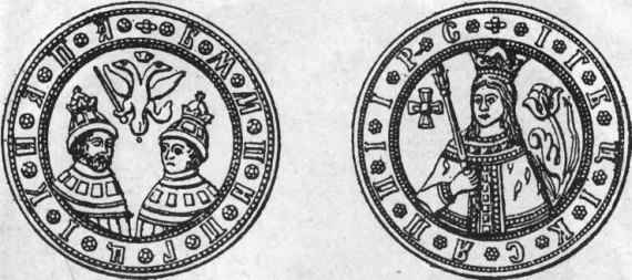 Рис. 24. Медаль царевичей Иоанна и Петра Алексеевичей и царевны Софьи.
