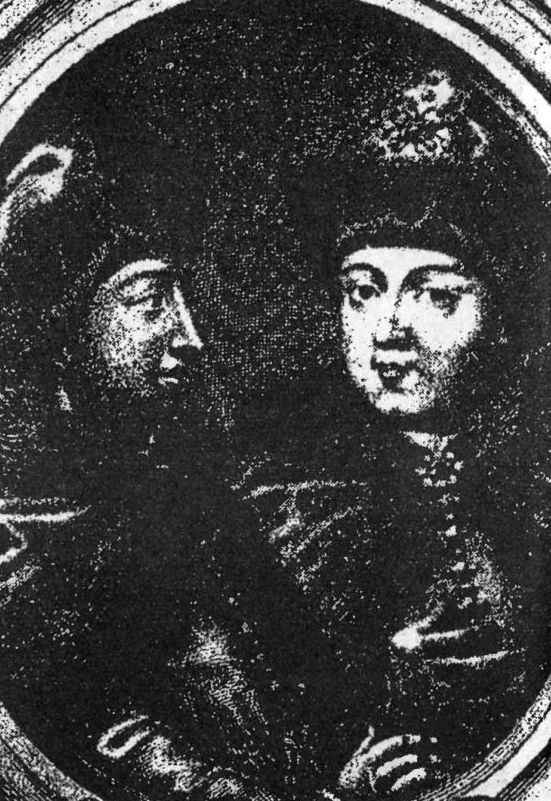 Рис. 25. Цари Иоанн и Петр Алексеевичи. Французская гравюра 1685 года.