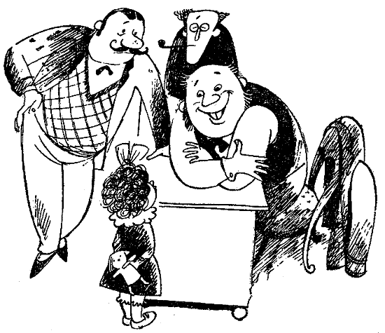 На днях в редакцию «Почты» пришла женщина — агент по продаже книг. Ее провели в кабинет к главному редактору, а ее маленькая четырехлетняя дочка, пришедшая вместе с ней, осталась в общей комнате, по-видимому, привлеченная необычайно приятным видом сотрудников, которые, развалясь, сидели за своими столами и наслаждались отнюдь не случайным досугом.
