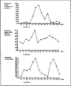 Рис. 4.5. Количество несчастных случаев со смертельным исходом, происшедших до, в день и после опубликования сообщения о самоубийстве. Как наглядно видно из этих графиков, самая большая опасность существует в течение трех-четырех дней после публикации сообщения в прессе. После короткого периода снижения кривой следует еще один подъем приблизительно через неделю после опубликования рассказа. К 11 дню кривая снижается до обычного уровня. Эта графическая модель позволяет выявить важную деталь, имеющую отношение к скрытым самоубийствам. Те, кто намерен представить свое самоубийство как несчастный случай, ждут несколько дней, прежде чем совершить этот акт — возможно, чтобы набраться мужества, спланировать происшествие или привести в порядок свои дела. Какими бы ни были причины, важно одно — путешественники подвергаются наибольшей опасности в течение трех-четырех дней после публикации сообщения о самоубийстве и затем, в меньшей степени, несколькими днями позже. Следовательно, путешественникам надо быть особенно внимательными в это время