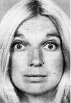 Челюсть может опускаться без каких–то движений остальных элементов лица. На рис. 8 показано лицо, на котором удивление отражается только в нижней его части в виде опущенной челюсти, а для сравнения показано то же лицо в нейтральном состоянии. Смысл опускания челюсти состоит в том, чтобы выразить ошеломление. Опускание челюсти могло бы произойти, если бы Патрисия действительно была чем–то ошеломлена; оно может служить эмблемой, если Патрисия захочет заявить, что она была ошеломлена в какой–то момент в прошлом; или оно может использоваться для придания лицу притворного выражения, когда она захочет разыграть ошеломление. Рисунки 8 и 5 показывают, как изменение одной части лица приводит к полному изменению выражения всего лица. Взгляните на область глаз на рис. 8Б: кажется, что выражается чуть больше удивления, чем на рис. 8А. Но это также составная фотография; если вы закроете своей рукой области рта на обоих изображениях, то увидите, что глаза и брови — лоб на обеих фотографиях одинаковы.