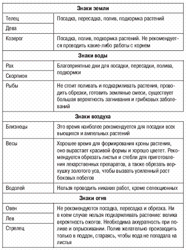 В течение лунного месяца, от новолуния до полнолуния, Луна проходит все знаки зодиака. В зависимости от того, в каком знаке она находится, рекомендуются различные виды работ с различными растениями.