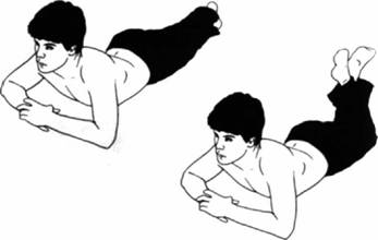 Сядьте на табурет так, чтобы ноги (согнуты в коленях под углом 90 градусов) не касались пола (будут касаться - подложите под себя что-нибудь, например, книги или подушки. Положите лодыжку правой ноги на лодыжку левой. Теперь разогните левую ногу, сопротивляясь движению правой (напрягаете бицепс правой ноги) с усилием, при котором сможете выполнить не более 8-12 разгибаний.