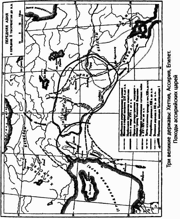Раздел «сфер влияния» и «вечный мир» между Египтом и Новохеттским царством были вызваны, не в последнюю очередь, объединением в это время ассирийских городов-государств в единое царство, которое тут же заявило о себе как о жестоком агрессоре. При царе Ададнерари (1307–1275 гг. до Р.Х.) в очередной раз была разбита дряхлая Вавилония, его сын, Салманасар I (1274–1245 гг. до Р.Х.) окончательно уничтожил государство Митанни, обозначив основное направление ассирийской экспансии на запад — против Египта и хеттов.