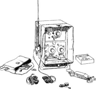 Комплект радиостанции № 18 (Mk III). Элементы, входившие в укладку, включали приемопередатчик, 12 штырей антенны типа В (крепились по 6 с каждой стороны корпуса) и сумку для принадлежностей: двух пар наушников, микрофона, телеграфного ключа, запасных радиоламп и провода для заземления. Эта рация применялась в наземных частях и обеспечивала связь на небольших расстояниях (одна — пять миль) между пехотными ротами и штабом батальона. На уровне взвода радиосвязь не применялась.