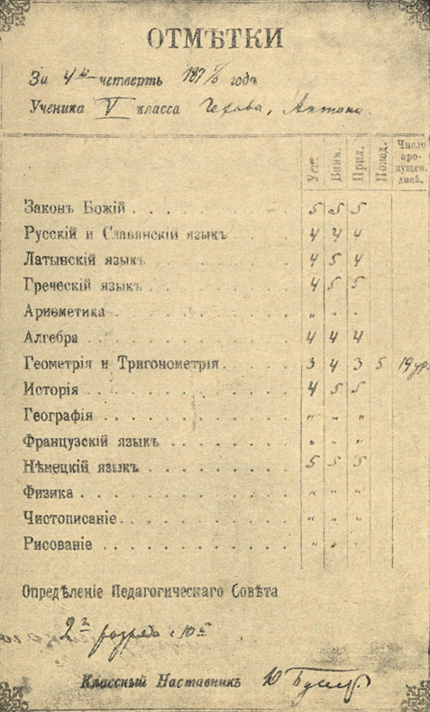 Скорей кончай в Таганроге ученье да приезжай пожалуйста скорей терпенья не достает ждать и непременно по медецынскому факультету сашино занятие не нравится нам, присылай наши иконы по немногу, еще скажу, антоша, если ты трудолюбив то в Москве всегда дело найдешь и зарабатываешь деньги.