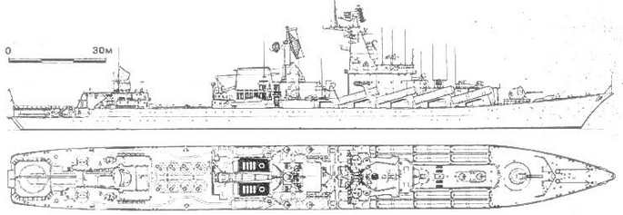 23.1 1.1974 г. нанес визит в Дакар (Сенегал), 14 - 19.10.1976 г.- в Сплит (Югославия), 27.9 - 1.10.1981 г.- в Эль-Джазаир (Алжир) и 26 - 30.3.1984 г.-в Гавану (Куба). В период с 12.5.1977 г. по 6.10.1978 г. и с 3.2.1986 г. по 1 1.1 2.1987 г. прошел на «Севморзаводе» в Севастополе капитальный ремонт. 24.6.1991 г. разоружен, исключен из состава ВМФ в связи с передачей в ОФИ для демонтажа и реализации и 31.12.1991 г. расформирован.