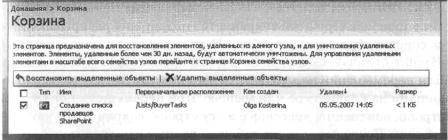 1. Щелкните на ссылке Корзина (Recycle Bin) в левой области навигации, чтобы открыть страницу Корзина (Recycle Bin).
