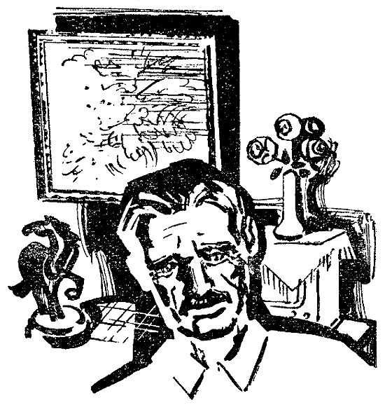 Я вошел, формальности ради небрежно показал свое удостоверение. Хозяин взглянул на мой документ, стараясь сохранить приветливое выражение лица. Уютный холл, два кресла, два мягких пуфа с бледно-розовой обивкой. Низенький полированный столик с хрустальной пепельницей и фаянсовой статуэткой, изображающей некий гибрид сенбернара и жеребца. На стене картина, полная кроваво-фиолетовой сирени. В углу — радиоприемник и телевизор. Красно-синий чипровский ковер, портьеры с большими желтыми цветами. Все новое.