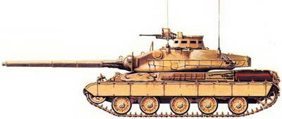Вверху справа. Французский танк АМХ-30 был вооружен 105-мм нарезной пушкой СН-105-F1. Бронебойный снаряд имел начальную скорость полета 1000 м/с и пробивал броню толщиной до 400 мм по нормали на дальности до 800 м.