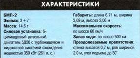БМП-2 стала результатом усовершенствования предыдущей модели. Вместо 73-мм гладкоствольного орудия установили скорострельную 30- мм пушку, а вместо устаревшей ПТУР 9М14 «Малютка» - 9М111 «Фагот».
