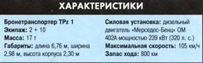 Командир и водитель располагаются в передней части машины, за ними и левее находится двигатель, а далее - транспортно-десантное отделение, которое соединяется с отделением управления узким проходом. В транспортно-десантном отделении в два ряда (по пять с каждой стороны) расположены откидные сиденья, имеются двустворчатая кормовая дверь, люки в крыше корпуса и три стеклоблока для наблюдения. TPz 1 - плавающая машина, движение на плаву со скоростью до 10,5 км/ч обеспечивается за счет вращения двух гребных винтов. В бундесвере все TPz 1 оснащены системой защиты от ОМП и приборами ночного видения пассивного типа.
