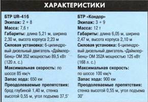 Как и большинство машин этого типа, UR-416 может быть оснащен различным дополнительным оборудованием, в том числе башней. На волне успеха UR-416 фирма-производитель разработала новую машину с усиленной защитой, увеличенными скоростью, запасом хода, грузоподъемностью, улучшенными амфибийными качествами и возможностями По установке более тяжелого вооружения. Первый прототип этого БТР, получившего название «Кондор», был создан в 1978 году, в настоящее время около 600 таких машин стоит на вооружении. БТР «Кондор» имеет сварной бронекорпус, экипаж из трех человек (командир, стрелок и водитель) и десантное отделение на девять пехотинцев, которые могут вести огонь из личного оружия, не покидая машины. В средней части корпуса обычно устанавливается башня с пулеметом или 20-мм пушкой.