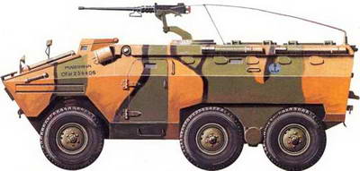 Трехосный полноприводный бронетранспортер SIBMAS с 20-мм пушкой в башне SAMM ТТВ 120 французского производства.