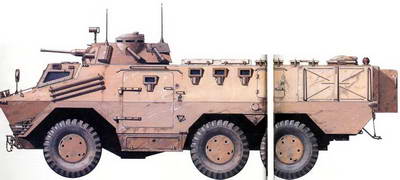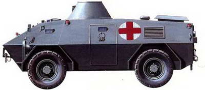 Базовая модель БТР «Роланд» может быть легко трансформирована в специальные машины, как, например, санитарную, что показана на рисунке.