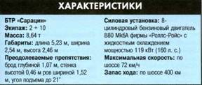 Механик-водитель в БТР «Сарацин» располагался в передней части кабины по центру, командир - слева от него, радист - справа. В десантном отделении могли разместиться до восьми пехотинцев с полной выкладкой (по четыре в ряд на установленных в центре продольно сиденьях, спиной друг к другу). Над передней частью кабины на турели установили 7,62-мм пулемет, над кормовой - зенитный пулемет калибра 7,62 мм. Передние четыре колеса - управляемые (рулевое управление оснащено гидроусилителем), машина способна продолжать движение при повреждении или отсутствии одного колеса с каждого борта.