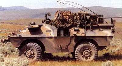 Машина радиоэлектронной борьбы на базе БТР «Драгун» в ходе испытаний на полигоне 9-й механизированной дивизии ВС США. Аппаратура предназначалась для подавления средств связи противника и радиоразведки поля боя.