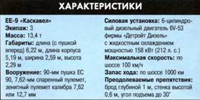 Поздние модели ЕЕ-9 «Каскавел» оснащены лазерным дальномером, установленным над маской 90-мм пушки, и 7,62-мм пулеметом на командирской башенке. ЕЕ-9 широко применялись иракскими войсками в ходе войны с Ираном (1980-1988).