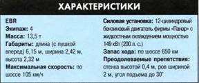 Разведывательная бронемашина EBR (8 х 8) была создана фирмой «Панар» еще до Второй мировой войны, однако оставалась на вооружении французской армии почти 50 лет. Особенностью ходовой части были вывешиваемые средние четыре колеса, которые опускались только для преодоления препятствий или движения по сыпучим или иным труднопроходимым типам грунта.