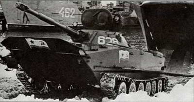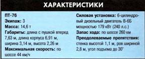 ПТ-76 запечатлен во время высадки с борта танкодесантного корабля Краснознаменного Северного флота. Виден поднятый экран в передней части корпуса, обращает на себя внимание большой люк в башне. Вооружение танка включало 76,2-мм пушку и спаренный 7,62-мм пулемет.