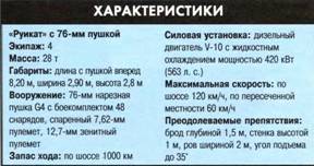 Основным вооружением является 76-мм пушка G4. Орудие стабилизировано в двух плоскостях, затвор полуавтоматический вертикального запирания, ствол снабжен термозащитным кожухом и эжекционным устройством. Противооткатное устройство с конической пружиной и гидросистемой обеспечивает длину отката 370 мм. Боекомплект включает 48 оско- лочно-фугасных и бронебойных снарядов. Девять выстрелов устанавливаются вертикально слева под погоном башни. Максимальная скорострельность составляет шесть выстрелов в минуту. Бронебойные снаряды имеют эффективную дальность стрельбы до 2000 м и способны пробить броню таких танков, как Т-54/55 и Т-62. Осколочно-фугасные снаряды имеют дальность огня прямой наводкой до 3000 м, по настильной траектории - до 12 000 м.