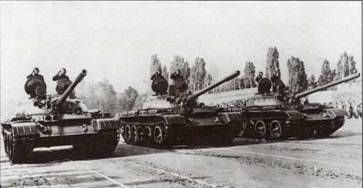 Справа. Т-62 со 115-мм гладкоствольной пушкой участвовали в арабо-израильской войне 1973 года. Этот танк в 1980-х годах использовался в учебных целях американскими войсками, дислоцированными в ФРГ.