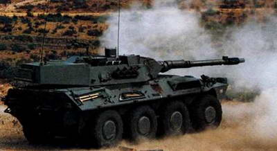 ББМ «Кентавр» во время испытаний 105-мм пушки. Хорошо видны общая компоновка машины и башня с низким силуэтом и большим турнюром.