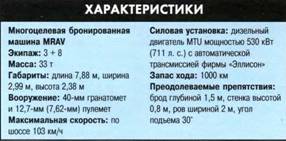 MRAV будет оснащена также приборами ночного видения различного типа, системой централизованной подкачки шин, гидроусилителем рулевого управления и антиблокировочной системой торможения.