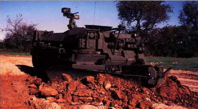 Машина вооружена 12,7-мм пулеметом с дистанционным управлением, имеются дымовые гранатометы. Автоматическая трансмиссия фирмы «Аллисон» обеспечивала движение вперед на четырех передачах, назад - на двух. Экипаж состоит из двух человек (командир и механик-водитель), оба обучены управлению навесным инженерным оборудованием. В передней части сварного броневого корпуса, по правому борту, смонтирована телескопическая стрела, которая в походном положе- нии развернута к корме. Впереди корпуса имеется бульдозерный отвал с ноже вым минным тралом, позволяющим взрыхлить почву на ширину 4,2 м и глубину 305 мм. Зубья трала быст- росъемные, что позволяет оперативно производить их замену.