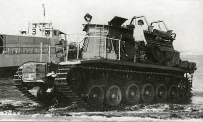Вверху. «Пляжная» БРЭМ на шасси танка «Центурион» у среза воды на морском побережье.