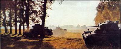 Немецкие танки 38(t) и Т-И (справа) во Франции в мае 1940 года. За счет современной тактики действий и средств связи эти легкие танки одержали победу над противником, который располагал более мощной бронетехникой.