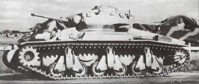 Боевое крещение танков «Шерман» состоялось в битве при Эль-Аламейне в октябре 1942 года. До этого немцы имели дело лишь с устаревшими танками М3 «Грант» с размещенной в спонсоне 75-мм пушкой, и появление на поле боя танков «Шерман» с 75-мм пушкой во вращающейся башне оказалось для германских войск неожиданностью. Орудие М4 было способно поразить любой из немецких танков того времени, но вскоре немцы обнаружили и слабое место в его конструкции - недостаточную броневую защит)'. В результате немецкий танк T-IV был способен пробить броню М4 с таких дистанций, на которых американская 75-мм пушка не представляла для него большой угрозы. После того как на вооружение немецких танковых частей стали поступать тяжелые танки «Тигр», вооруженные мощной 88-мм пушкой и имевшие самую надежную броневую защит)' в мире, задачей американских конструкторов стало наращивание брони и повышение огневой мощи своих танков.