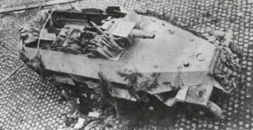 Верхний снимок. Полугусеничный транспортер SdKfz 251/9, захваченный в боях в Арденнах 21 декабря 1944 года. Вооружение включало короткоствольную 75-мм пушку и пулемет MG 42 калибра 7,92 мм.