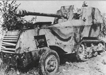 Вверху. В 1944 году, в преддверии высадки союзников в Нормандии, немецкие специалисты переделали французский полугусеничный транспортер MCG, установив бронированную башенку с противотанковой пушкой Рак 40 калибра 75 мм. На снимке одна из 16 машин, подвергшихся подобной конверсии.