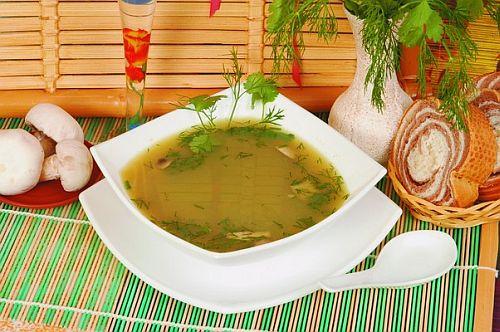 Шампиньоны промыть, нарезать тонкими ломтиками. Зелень укропа и кинзы вымыть, мелко нарезать (несколько листиков оставить для украшения). Даси влить в кастрюлю, довести до кипения, добавить шампиньо-ны, варить на маленьком огне 3 мин. Снять бульон с огня, добавить яйцо, размешать против часовой стрелки, накрыть крышкой на 30 с. Разлить по тарелкам, посыпать зеленью, украсить листиками укропа и кинзы и сразу подать к столу.