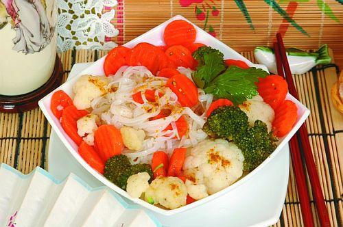 Рисовая лапша с капустой и морковью