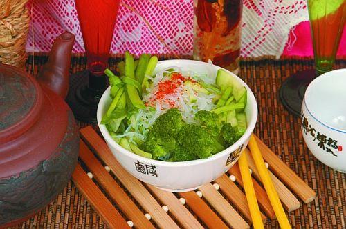 Рисовая вермишель с брокколи и огурцами