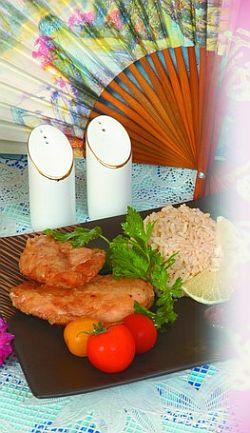 Отбивные из курицы с бурым рисом и шиитаке
